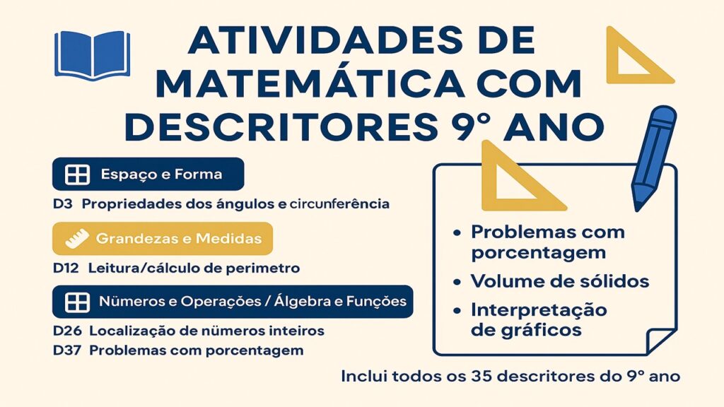 Se você é professor ou estudante do 9º ano do Ensino Fundamental e está buscando atividades de matemática organizadas por descritor, chegou ao lugar certo! Preparamos um guia prático, com propostas de exercícios e aplicações reais que facilitam o desenvolvimento das habilidades cobradas nas principais avaliações externas, como SAEB.